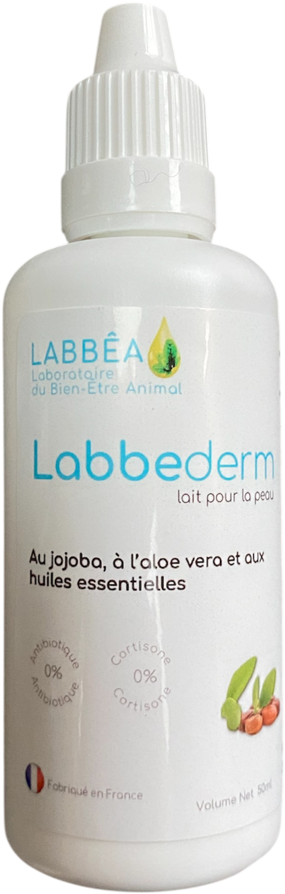 LABBEDERM est un lait apaisant formulé avec des composants naturels (sans antibiotique, sans cortisone) permettant un usage régulier, sans risque pour la peau ou les muqueuses (hors oculaires) et sans effets secondaires pour l’animal s’il venait à lécher l’excédent.