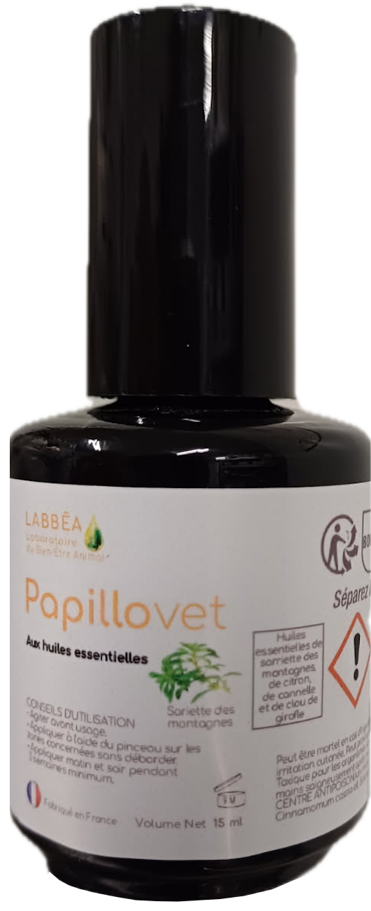 Aux huiles essentielles de sarriette des montagnes, de citron, de clou de girofle, et de cannelle de Chine.